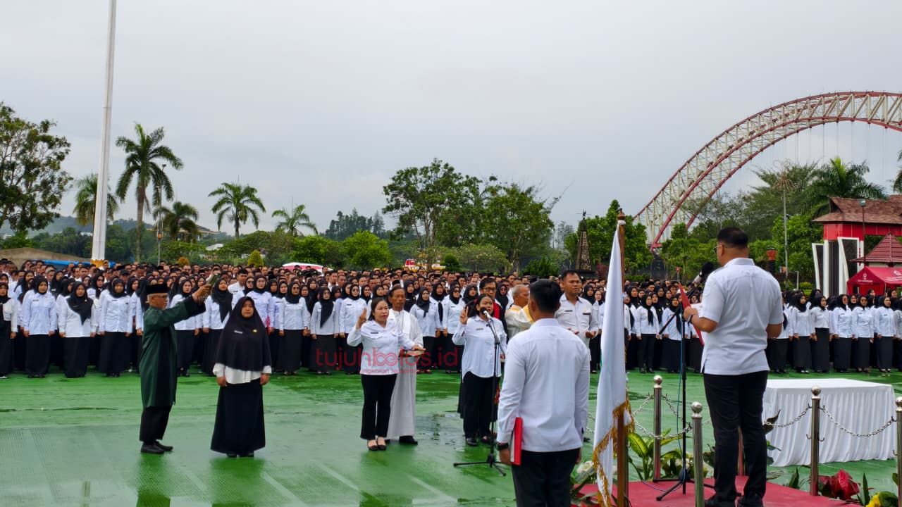 tujuhbelas.id, KUTAI KARTANEGARA — Pemerintah Kabupaten (Pemkab) Kutai Kartanegara (Kukar) kembali menegaskan komitmennya dalam memperkuat pelayanan publik yang merata di seluruh wilayah. Hal ini ditandai dengan pelantikan dan pengambilan sumpah sebanyak 1.886 Pegawai Pemerintah dengan Perjanjian Kerja (P3K) oleh Bupati Kukar, Aulia Rahman Basri, pada Jumat (31/10/2025) di Lapangan Kantor Bupati Kukar.