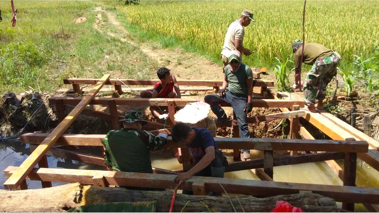 tujuhbelas.id, KUTAI KARTANEGARA – TNI Manunggal Membangun Desa (TMMD) ke 122 Desa Kerta Buana mulai berfokus pada pengerjaan infrastruktur pertanian yakni pembuatan jembatan. Pembangunan yang dilakukan oleh Satgas TMMD 122 ini bertujuan untuk meningkatkan produktivitas pertanian dan kesejahteraan para petani.