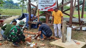TNI Bersama Warga Lakukan Pengecoran Pondasi Cek DAM