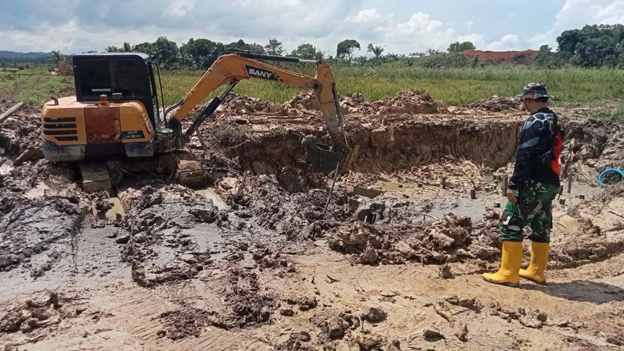 tujuhbelas.id, KUTAI KARTANEGARA – TNI Manunggal Membangun Desa (TMMD) ke-122 tahun 2024 terus berupaya meningkatkan produktivitas pertanian dengan melakukan kegiatan pembangunan tanggul penghambat yang berfungsi untuk membendung aliran air di lokasi lahan pertanian Kelompok Tani (Poktan) Sida Karya desa Kerta Buana, kecamatan Tenggarong Seberang.